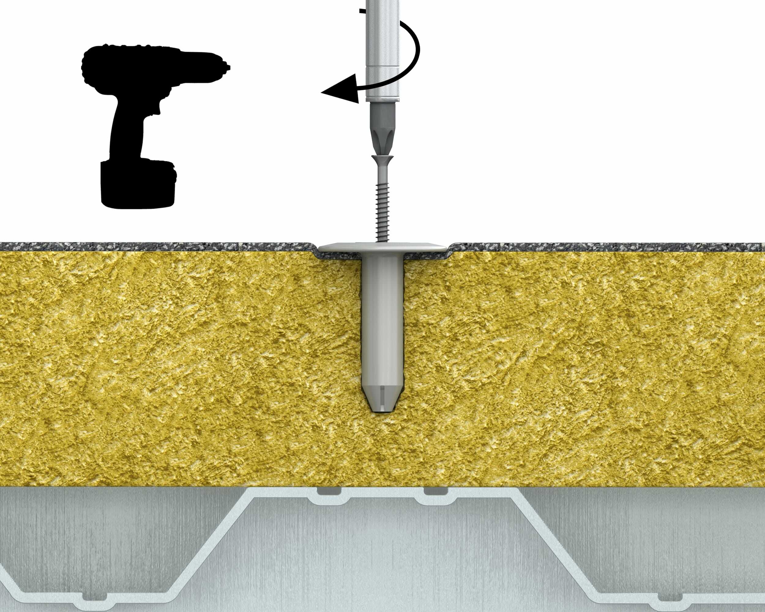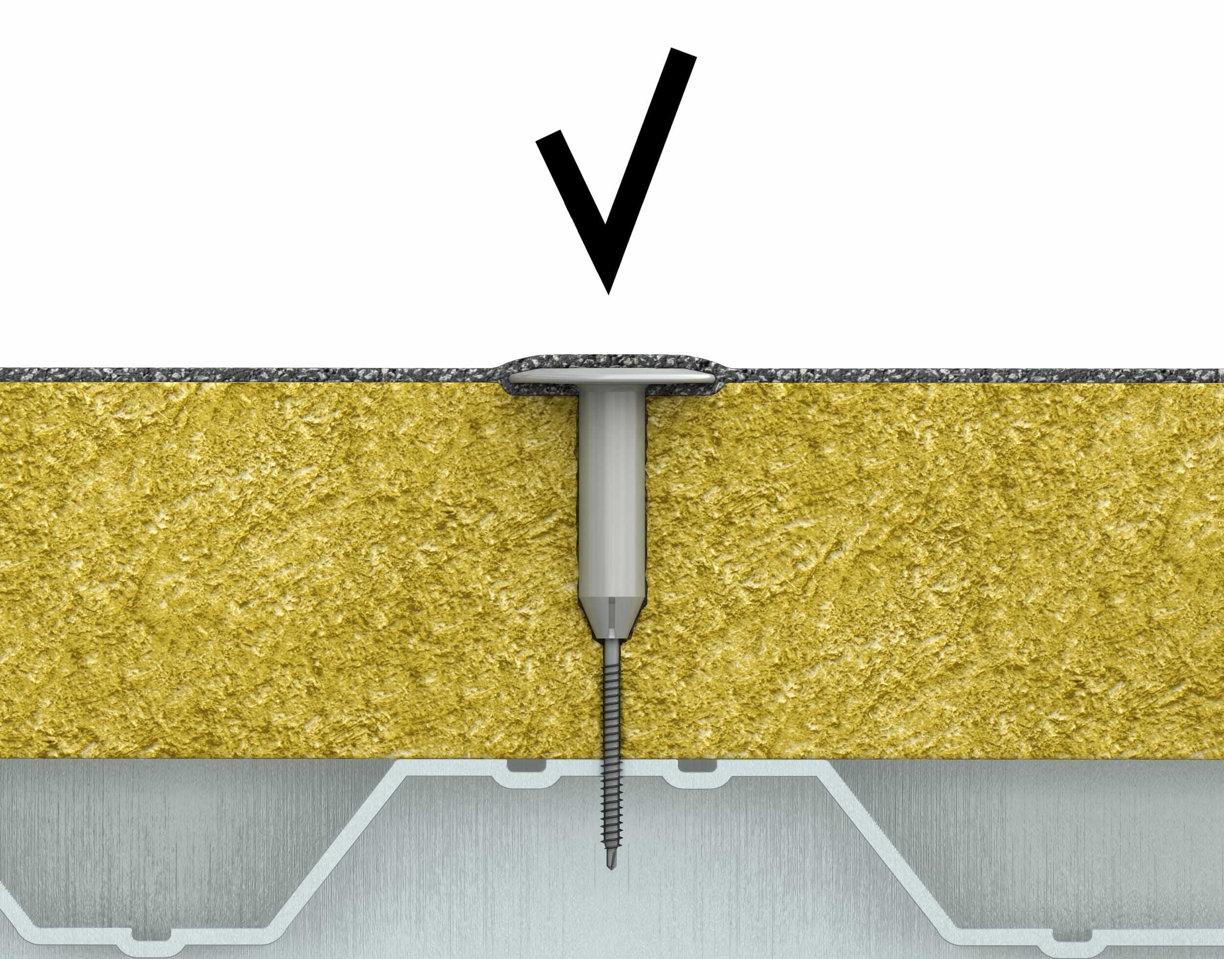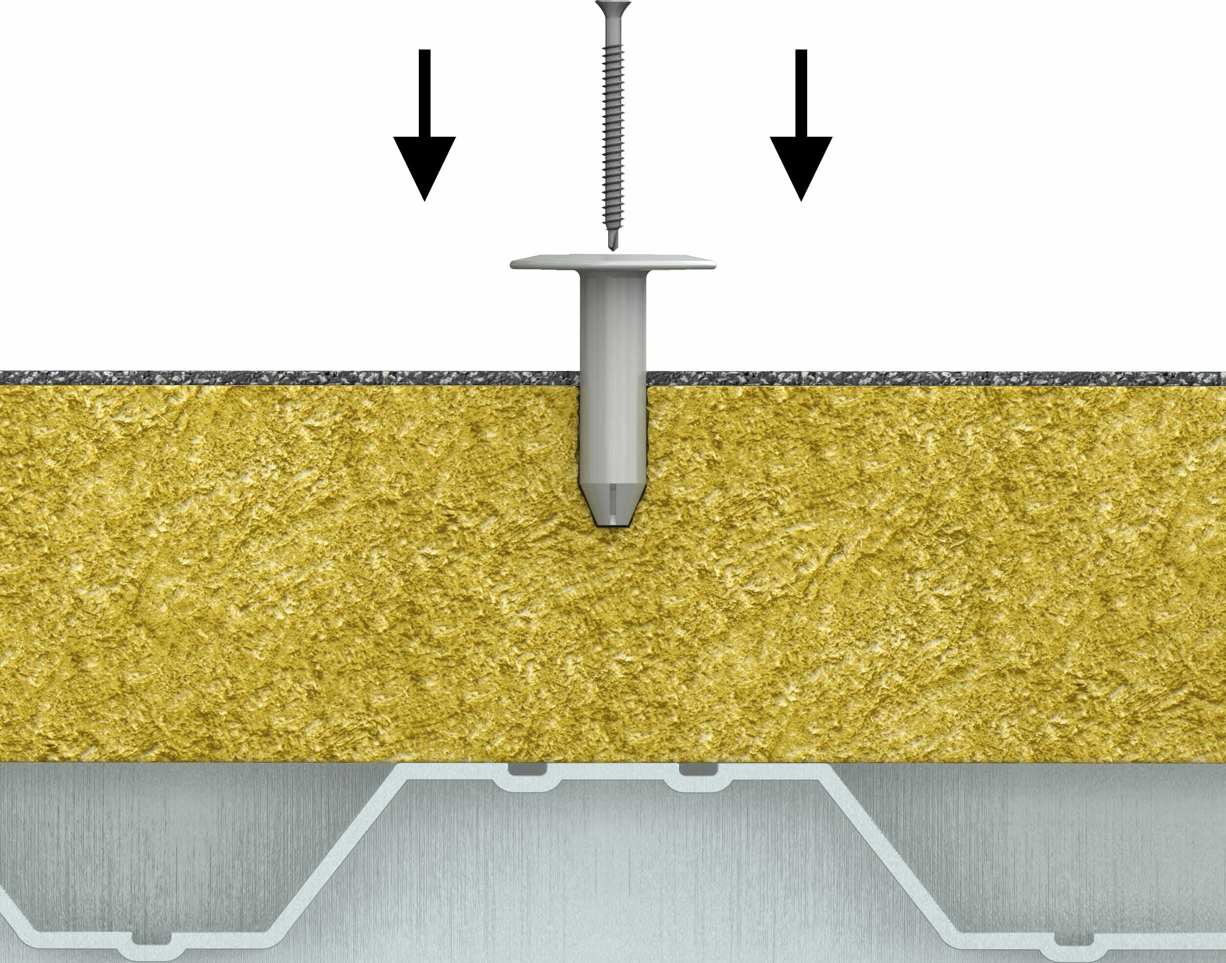 Utilizat în combinație cu șaiba de oțel / talerul R-GOK pentru instalarea straturilor de izolație pe acoperișuri plate cu substraturi din tablă